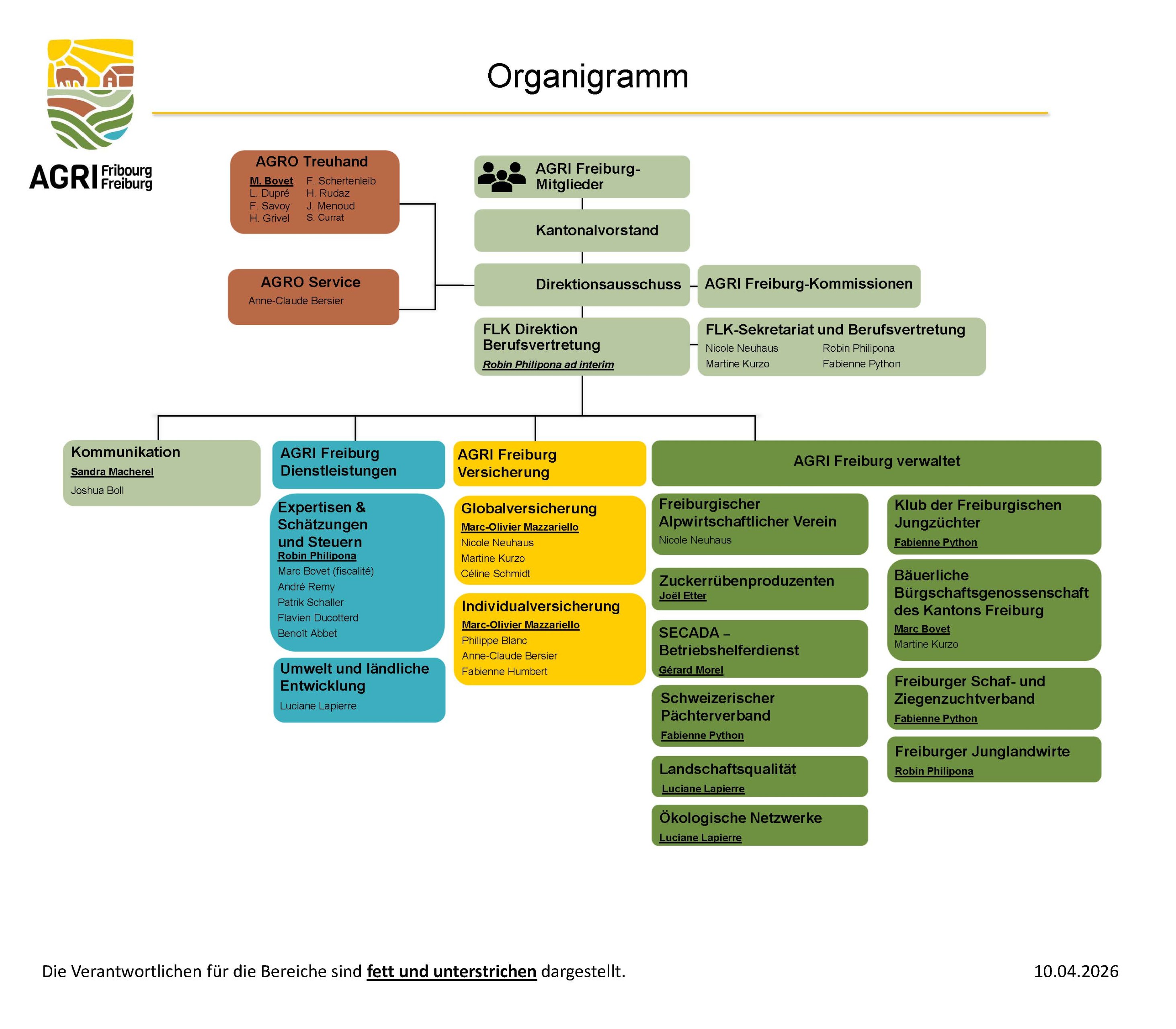 Um seine unterschiedlichen Aufgaben zu erfüllen, bevollmächtigt der AGRI Freiburg die Freiburgische Landwirtschaftskammer (FLK). Diese führt sämtliche Verwaltungsarbeiten des AGRI Freiburg aus.