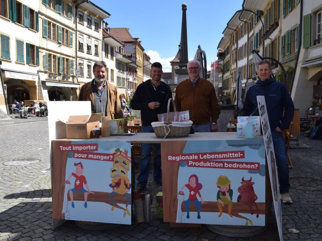 Dans trois semaines, les électeurs suisses se prononceront sur les deux initiatives "Pour une eau potable propre" et "Pour une Suisse libre de pesticides de synthèse". Des présences sur des stands ont été organisées dans tout le canton de Fribourg. L'objectif est d'informer la population de première main avec des agriculteurs et agricultrices.