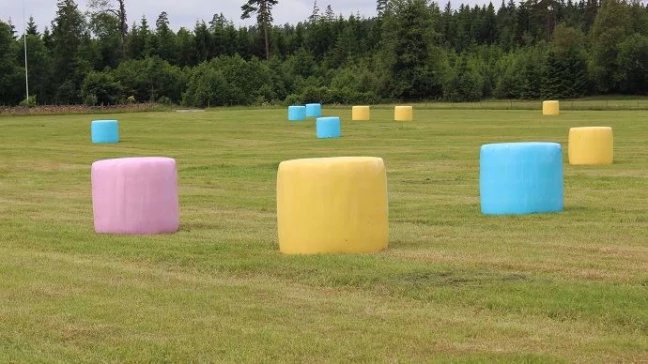 Les ensilages d’herbe et de maïs sont enrobés dans plusieurs couches de plastique afin de garantir une absence totale d’oxygène pour qu’une fermentation anaérobe puisse avoir lieu. Souvent, elles sont de couleurs blanches ou vertes, voire noires dans les régions du nord de l’Europe. En travaillant avec deux ou trois couleurs distinctes, les agriculteur·rice·s ont la possibilité de séparer le fourrage selon la qualité, selon les coupes d’herbe ou tout autre critère important à leurs yeux. Il existe également des plastiques roses, jaunes ou bleus, et ces différentes teintes ne sont pas anodines. A l’achat d’un rouleau de plastique d’une des couleurs précitées, l’agriculteur·rice et le/la vendeur·se paient chacun 1.- CHF supplémentaire qu’ils reversent à la ligue contre le cancer. Les balles roses soutiennent la recherche contre le cancer du sein, les bleues contre le cancer de la prostate et les jaunes contre les cancers touchant les enfants.