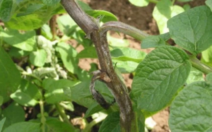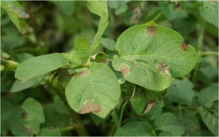 Le mildiou est une maladie fongique qui touche les pommes de terre, les tomates, les poivrons et d’autres espèces de solanacées. Les tubercules sont infectés de manière latente. Le pathogène passe l’hiver dans les plantons et se développe une fois la pomme de terre dans le sol. Les tubercules légèrement touchés se conservent mal et ceux plus gravement touchés deviennent impropres à la consommation. Les premiers signes apparaissent sur les feuilles. Avec le vent par temps chaud et humide au printemps, les sporanges du champignon se propagent et infectent les plantes voisines.